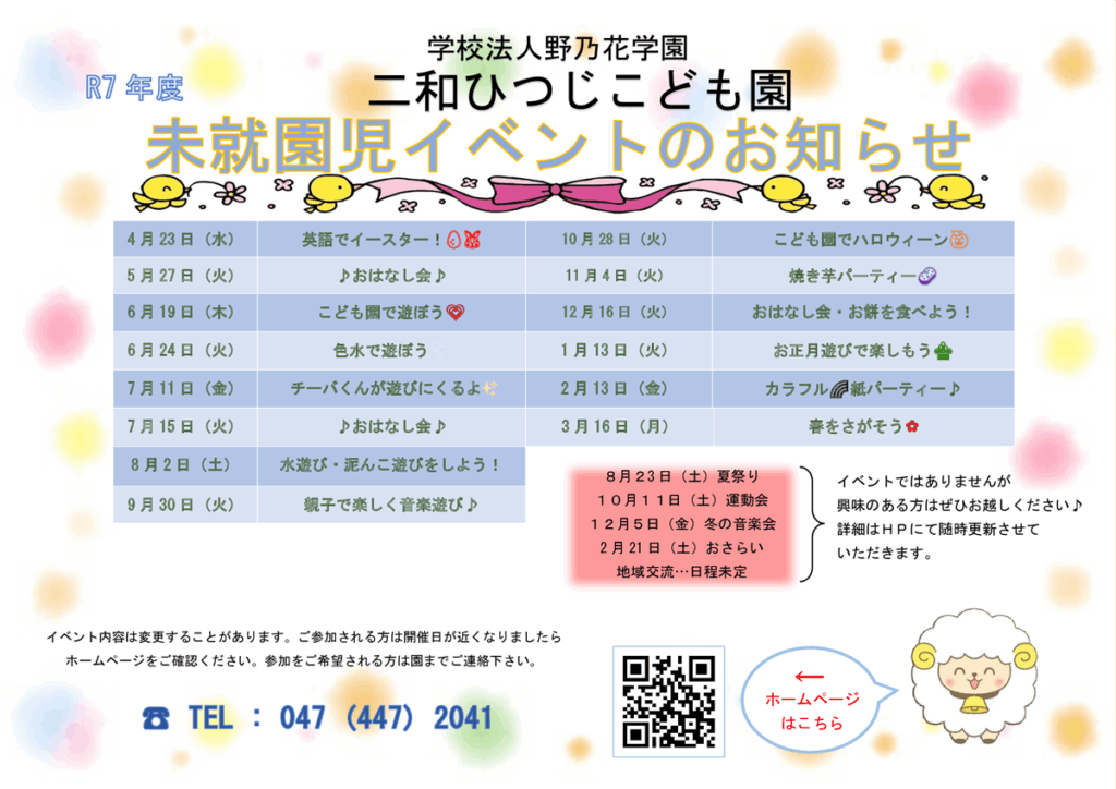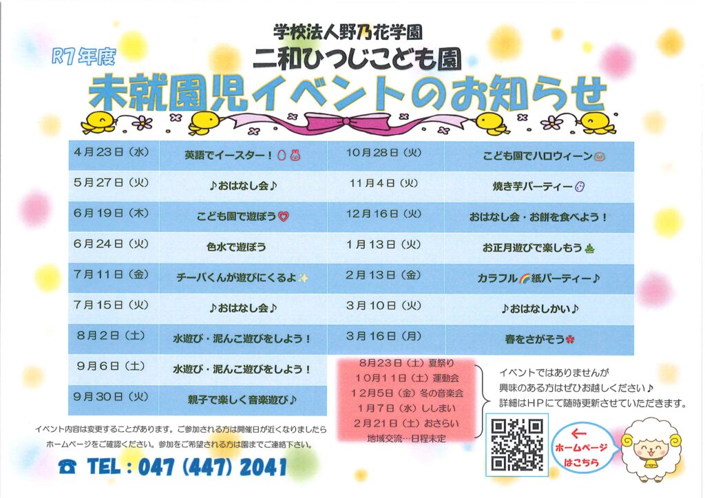 1~3 歳を対象とした未就園児イベントの年間予定はこちらです。